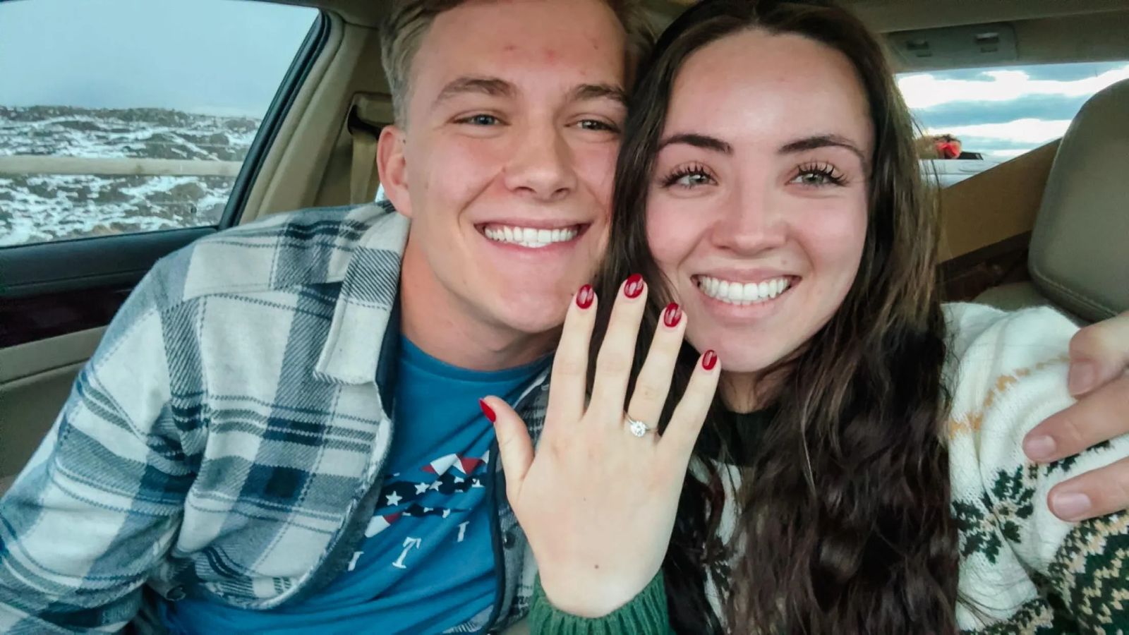 The engagement was the definition of shock factor! We had been talking about getting married for a while, so I knew it was coming soon, but Kaden decided he wanted to go for complete surprise and shock. It was a Monday evening, I had gotten off work and was headed to do my evening workout. Kaden called me and told me to hold up because he had some free time and wanted to come over. He arrived at my house with a bouquet of red roses, something he has always done throughout our relationship because he knows I love roses. With the roses was a sweater he had picked out for me that he was insisting I put on, telling me he wanted to go take pictures in the snow. I also love taking pictures, so I thought nothing of it as this is something we’ve done before. So, he drives me to a beautiful back road where the Bozeman Bridger Mountains were right in front of us, the sun was setting, and the fresh snow was sparkling all around us. We were just taking in the beautiful view when he stepped behind me, and I turned around and he was on one knee with a ring. It was picture perfect and a moment I won’t forget for as long as I live!