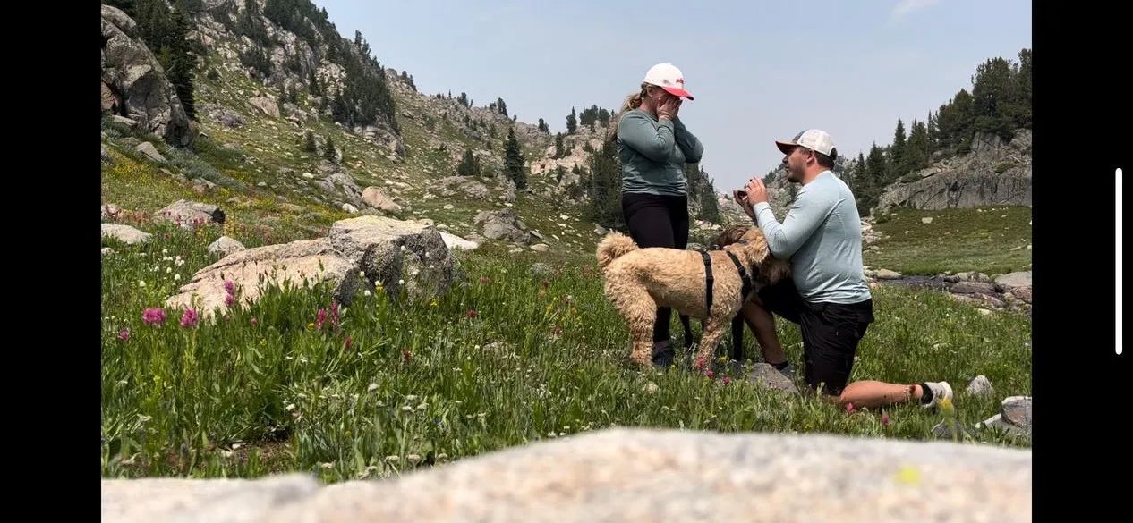 On July 27th, 2024 - Jamie and Zeb (and their two dogs, Kenai and Koda) were on day 2 of a 4-day backpacking trip in the Beartooths. They stopped and had lunch in a field of wildflowers by the creek. Zeb mentioned that it was the best spot that they’d seen on the trail and told Jamie to take the dogs to get ready for a picture. Zeb attempted to capture the moment but had trouble setting it up until the third time when it finally stayed perfectly in place. Zeb asked Jamie for a kiss - which she happily obliged - and then Zeb said, “I love you. I love our family. I love your unconditional support.” He then dropped down on one knee and asked Jamie to marry him. Kenai and Koda both jumped on Zeb and beat Jamie to saying yes! Jamie matched their excitement by continuing to say, “YES!” They spent that night stuck in their tent with their two wet dogs due to a very intense rainstorm. Yet, in true Jamie and Zeb fashion, they laughed all night about it and drank warm tequila. They felt blessed to be able to spend the first 2.5 days of their engagement alone with their little family. The second they got into service though - they told everyone they possibly could.