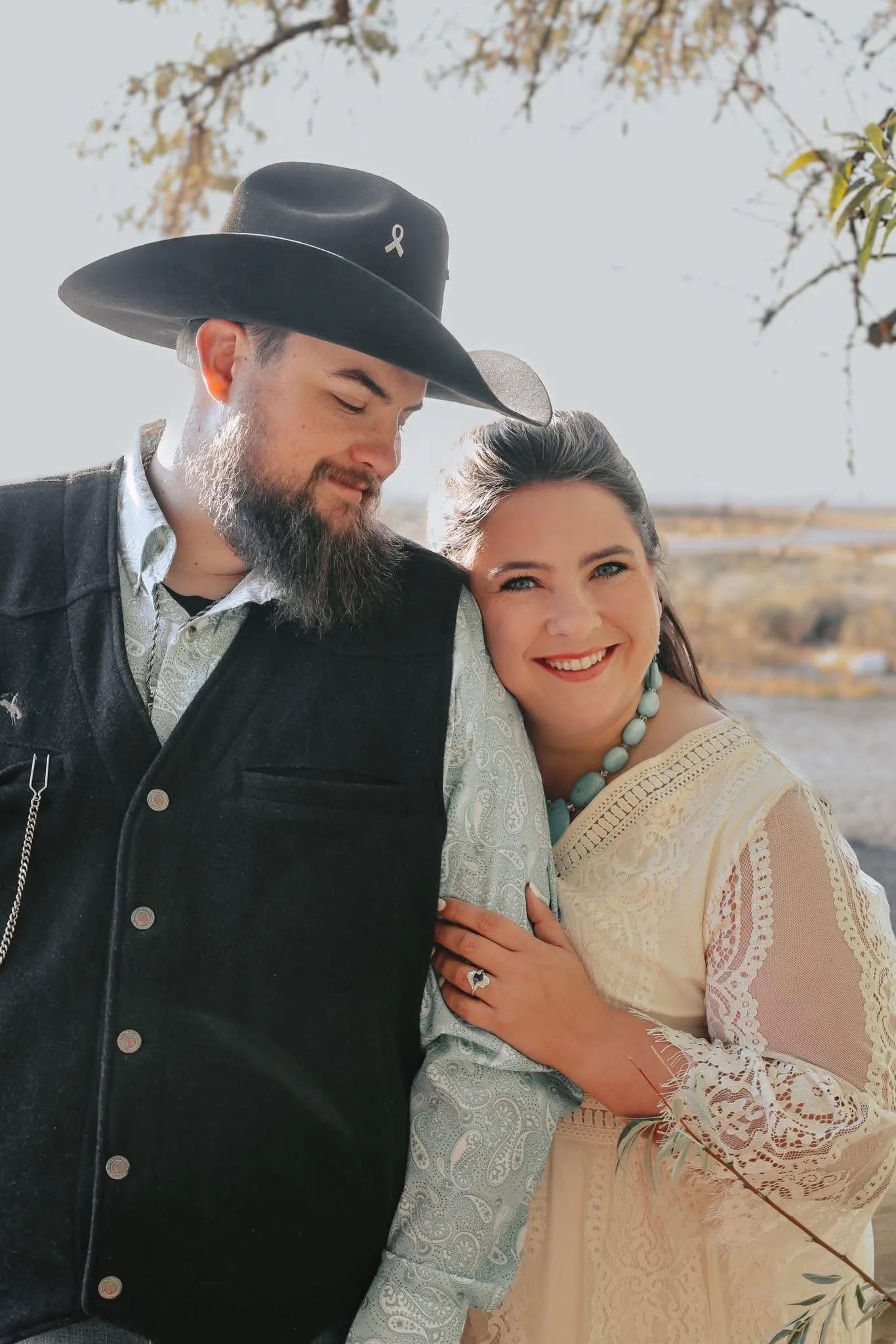 Not long after, Darren took her on an evening motorcycle ride — up to the “top of the world.” As the sun melted into the horizon and the sky glowed in soft Montana hues, he got down on one knee and asked her for real. This time, there was no joking.