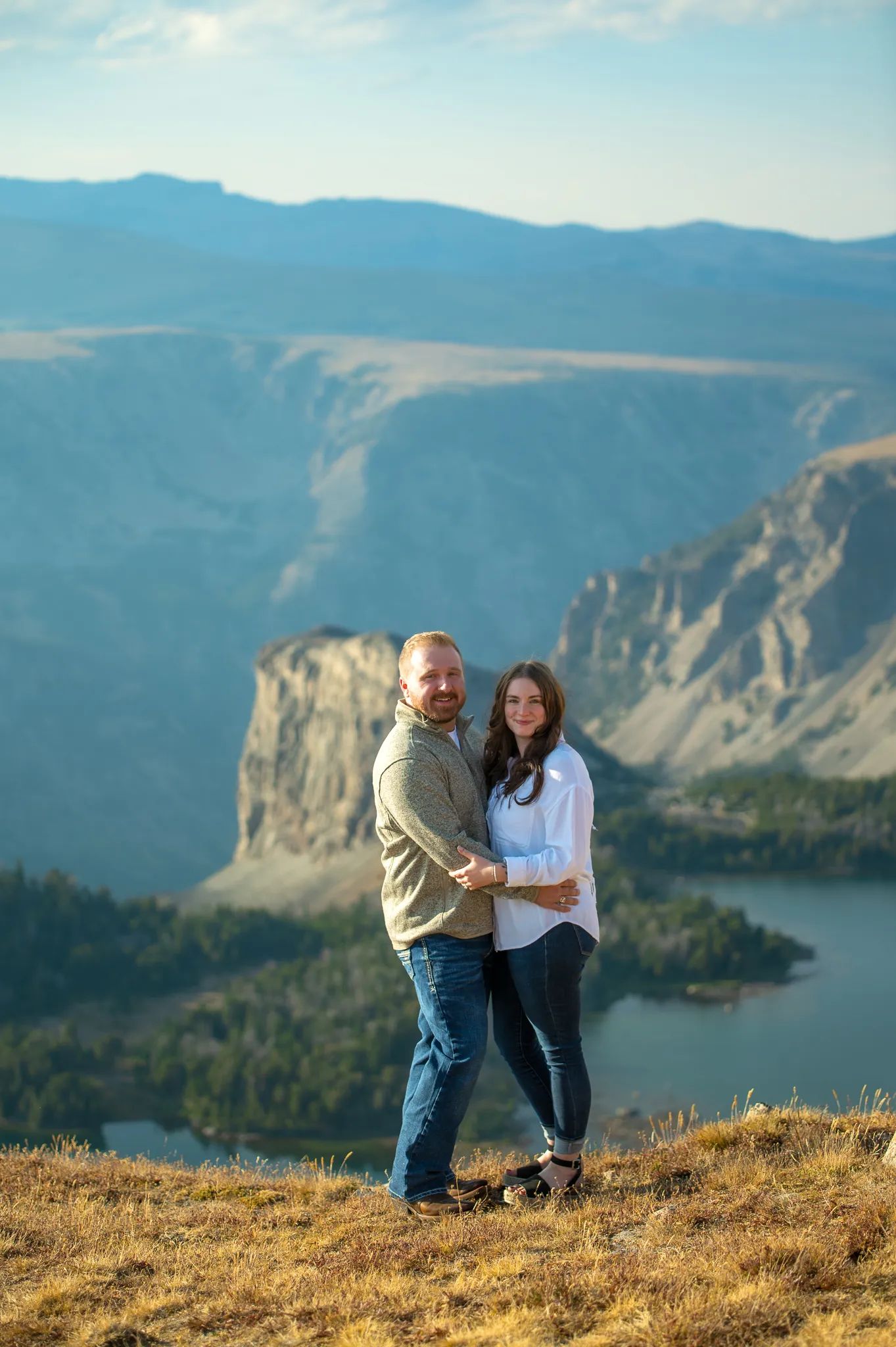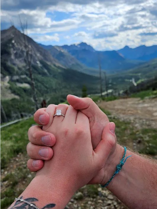 Mike and I got engaged in Cooke City, MT on Miller Mountain Road overlooking the Beartooth Mountain range on 6/28/2025. The day started with a hobby we both enjoy, archery. We shot at the Total Archery Challenge on Red Lodge Mountain the morning of our engagement. After we shot our event, Mike wanted to go "off-roading" in his new truck. Instead of picking somewhere closer, he decided it was a good idea to drive to Cooke City. When we got there, we did not have signal on our phones and almost got lost trying to find the trail Mike had in mind... Miller Mountain Road. We eventually found the opening of the trail and started the journey up the mountain. While driving up the very steep and rocky trail... I learned that I did not like off-roading and started to get cranky. I was white knuckling the door handles, our dog Sage, was bouncing around in the back and Mike was getting nervous (due to having a mad girlfriend on the way to a proposal). We stopped at a curve with views to "take some pictures" and Mike set up a tripod. I reluctantly got out to take a photo with him and only knew he was going to pop the question when he started to cry and grabbed both of my hands. The speech was so magical and I couldn't say yes fast enough. I became way less cranky after the proposal and forgave him for the stressful journey beforehand. We ended the beautiful day with dinner at Piccola Cucina Ox Pasture which quickly has become one of our favorite restaurants. I couldn't imagine a more perfect day.